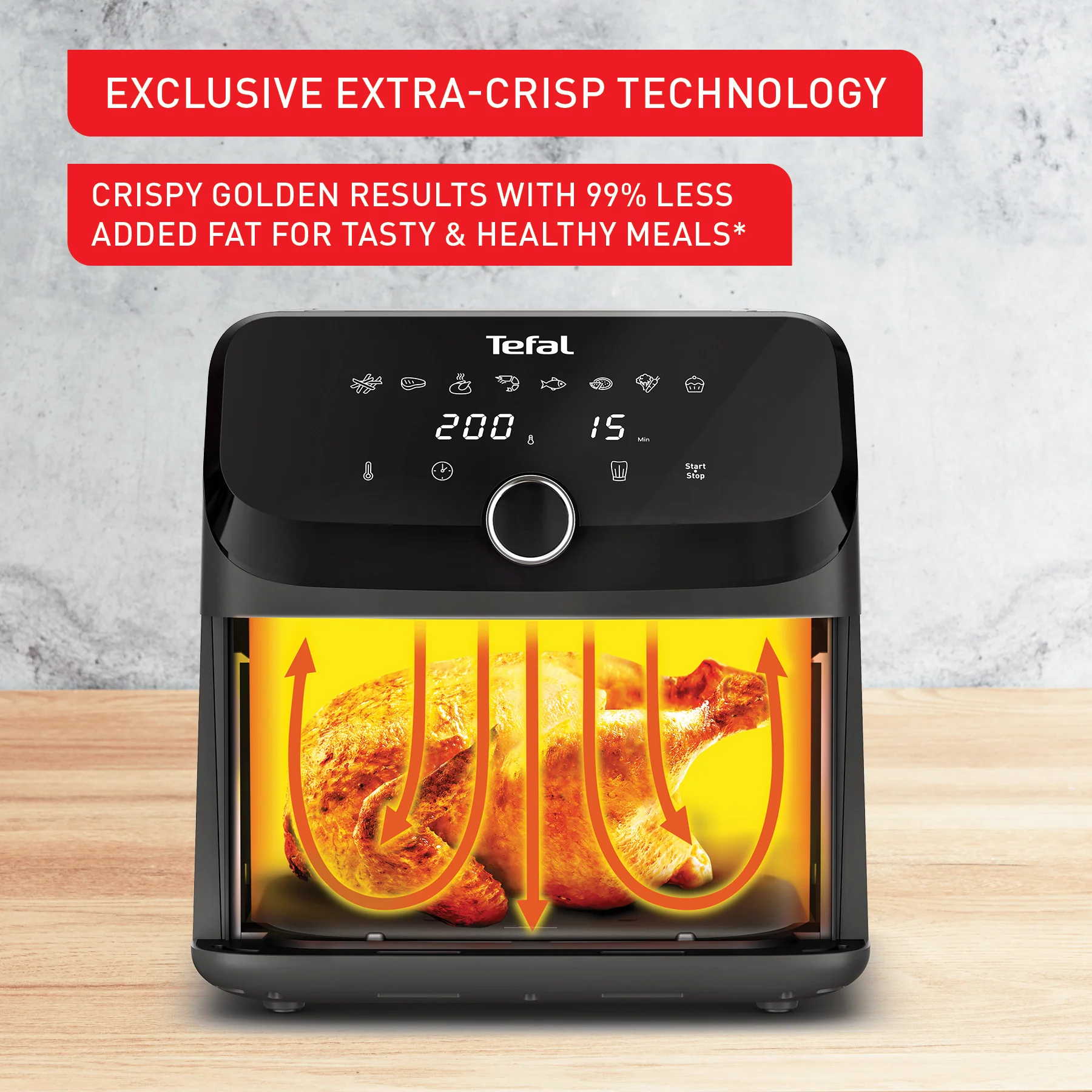 Discover an air fryer large enough to cook delicious meals for all your family and friends! Easy Fry Mega boasts an extra-large capacity that serves up to 8 people—but comes in a surprisingly compact form that saves on space. What's more, this easy-to-use oil-less fryer is equipped with 8 preset programs that help you cook a wide variety of balanced and tasty everyday meals to perfection. Plus, it's low on energy consumption and easy to clean.